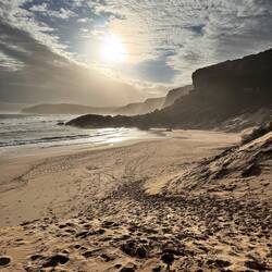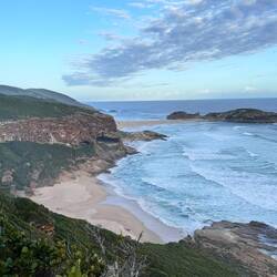 Nachdem es in der Nacht geregnet hat, warten wir darauf dass sich die Wolken verziehen. Wir wollen heute den 9 Kilometer langen Robberg Hiking Trail machen.