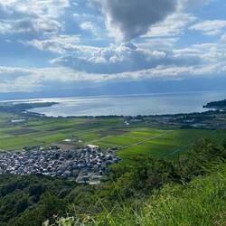 Arrivée à Omihachiman où nous allons passer la nuit à la guesthouse Mio. Nous posons nos valises et prenons le téléphérique du mont Hachiman. Nous "piochons" un omikuji pour notre bonneもっと詳しく