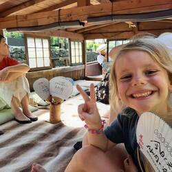 Nous nous réveillons doucement dans notre guesthouse et partageons notre petit déjeuner avec les autres hôtes...sans oublier Mama & Papa ! Jeanne s'initie aux joies de l'origami pendant que nousもっと詳しく