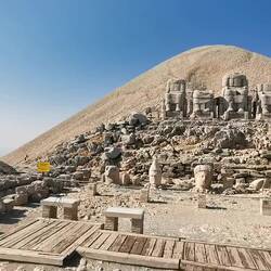 Unser erstes Etappenziel brachte uns heute zu Mount Nemrut. Hier konnten wir nach einen sehr steilen 12km langen Anstieg in sehr langsamer Fahrt die zwei Himmelsterassen mit ihren verfallenenLes mer