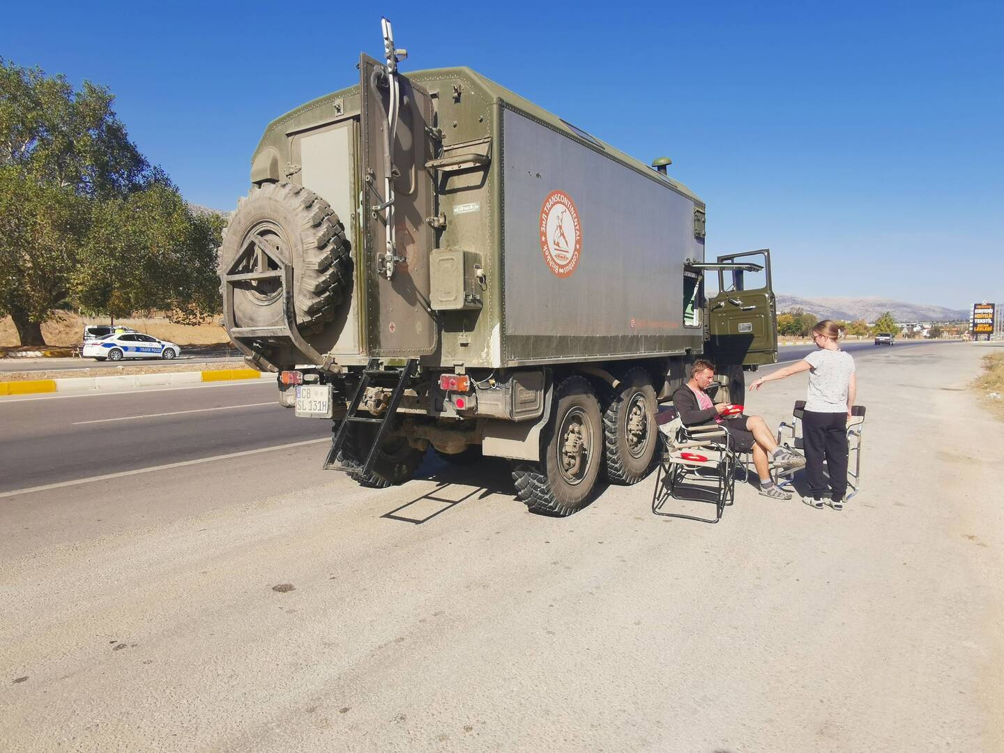 Die erste Polizeikontrolle seit der türkischen Grenze. Es hat ganz schön gedauert. Björn musste sein Ei leider kalt essen.