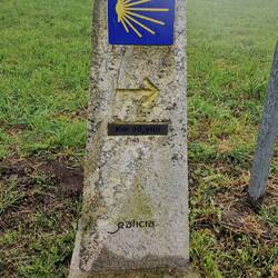 For the 1st time whilst walking, i stop for a coffee and pee and take my backpack off. Usually, when my pack goes on, it stays that way until I arrive. The coffee is amazing, and it feels so good to pee instead of holding it. Many people pee in the bushes, but that's not something I could manage. A couple I was following stop for a beer, and they let me know they aren't going further. I set off again. I go into the church to get my credential stamped, and the lady in there is lovely. As I walk out, I decide I'm having the best day ever.もっと詳しく