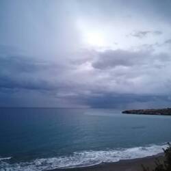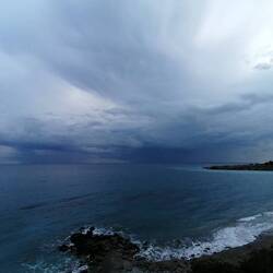 Dummerweise zog sowohl vom Meer als auch von den Bergen ein Gewitter auf und schwebte bedrohlich nahe über mir.