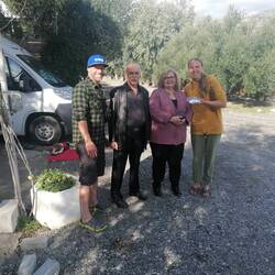 Zu unserem Stelldichein gesellten sich dann noch der Campingplatzbesitzer Nikos samt Frau dazu und brachten uns Kuchen und Olivenöl als Geschenk vorbei.