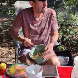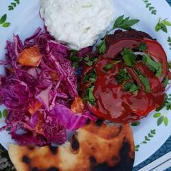 Bei meiner Rückkehr waren alle schon mit den Vorbereitungen für das Abendessen beschäftigt. Der Teig für die Pita Brote wurde von Didi fachmännisch geknetet, Pia kümmerte sich um den Hefezopf, den es zum Nachtisch gibt, Babs zauberte ihr köstliches Tzaziki und ich kümmerte mich um den Salat.