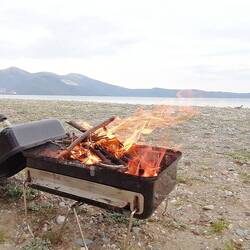 Schnell war auch der Grill startklar und Holz für das anschließende Feuer gesammelt.