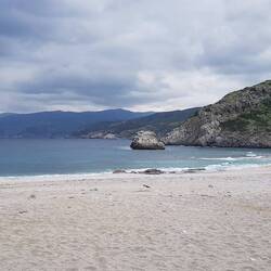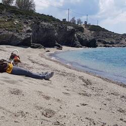 Leider war der Platz für ein Nachtlager zu windig und daher ungeeignet. Nach weiteren 20km Fahrt landeten wir am Livadaki Beach bei Karystos.