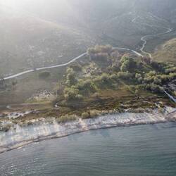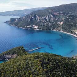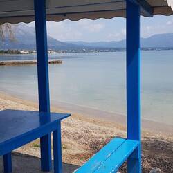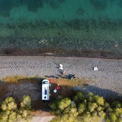 Unser heutiger Stellplatz liegt an einer verlassenen Taverna am Limnionas Mesochoria Beach.