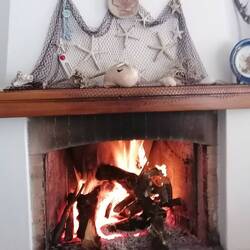 Bei einem wärmenden Feuer genossen wir allerhand griechische Speisen inklusive Rotwein und Nachspeise aufs Haus.