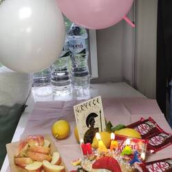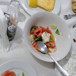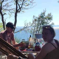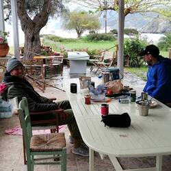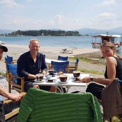 Während Pia noch joggen war, haben wir schon die 'Geschenke' der Taverna genossen.
