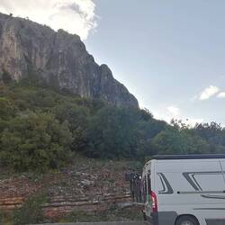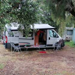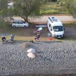 Schon heute früh hatten wir auf dem Camping Rovies angerufen. Im Gegensatz zu dem Kollegen von gestern war der Besitzer absolut freundlich und zuvorkommend. Sein Campingplatz ist zwar noch nicht offen, wir können aber sehr gerne vorbeikommen und dürfen hier stehen, damit wir einen sicheren Stellplatz haben. Und das komplett kostenlos. ☺️