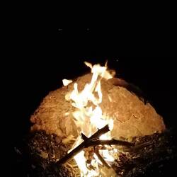 Leider können wir hier kein Lagerfeuer machen, so werden wir wohl nach dem Essen um einen Haufen warmer Kohlen sitzen und den Tag ausklingen lassen.
