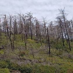 Leider tobten hier im Norden 2021 und 2022 unfassbar heftige Waldbrände. Während der Fahrt durch schwarze Skelettwälder konnte man nur erahnen, welch Naturgewalten in Form von unkontrollierbaren Feuerwalzen hier gewütet haben muss.