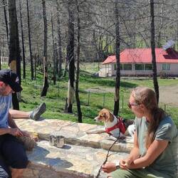 Dort wartete IRO schon sehnlichst auf den Rest seines Rudels, um sogleich wieder schnarchend auf Pia weiterzuschlafen.