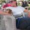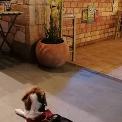 Der Nachteil daran ist, dass man jede 2 Minuten aufstehen und die Hundeleine irgendwo entwirren muss. Gelegentlich fallen auch ab und zu Stühle und der Tisch um, wenn der Herr Vierbeiner zu wild über den Platz tobt.