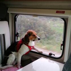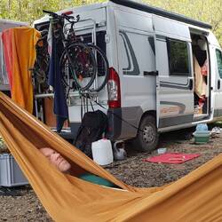 IRO wollte gar nicht aufstehen und ist heute früh nur aus seinem Nest in unser Bett umgezogen. Ich hab ne Campingplatz Runde gedreht und einen geeigneten Stellplatz für die Tage gesucht.