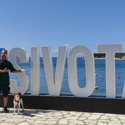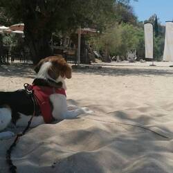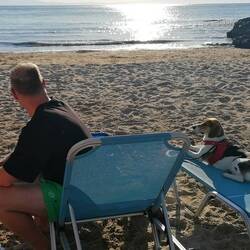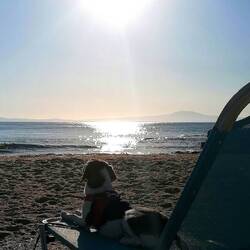 Völlig gechillt liegt er am Strand und schaut sich das wuselige Treiben an. Ihm sind sowohl Beach Bälle als auch schreiende Kinder völlig egal, von den streunenden Katzen gar nicht zu sprechen 😊.