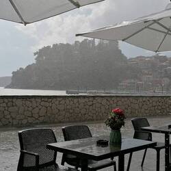 Immer wieder wechselten sich anschließend Regen und Sonne ab. Nachdem das Lager abgebaut, die komplette Logistik verstaut und alle Vorräte aufgefüllt waren, bedankten wir uns in Gedanken bei dem Besitzer der Taverna und waren im Nu wieder auf der Straße.