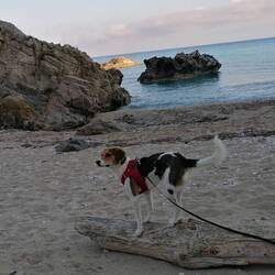 Heute ist nicht viel passiert, wir haben lange geschlafen und sind erst gegen vier an den Strand. Dort war HalliGalli, denn einige Hunde liefen frei und wollten alle mit IRO spielen.