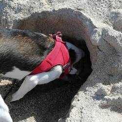 Ansonsten waren wir recht faul unterwegs und sind erst gegen zwei an den Strand. IRO ist seit der Hofwoche incl. Rudeltherapie wie ausgewechselt.