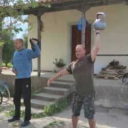 nach der Morgenrunde und dem ersten Kaffee sind Pia, Henrik und ich in Henrik's Gym zum Training.