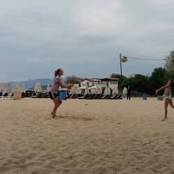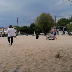 Später sind wir nochmal zur zweiten Halbzeit an den Strand, haben dort Frisbee gespielt und Espresso Freddo genossen. IRO hat sich ein wenig am Spiel beteiligt, fand es aber cooler, ganz vorne auf der Liege zu chillen und alles zu beobachten.