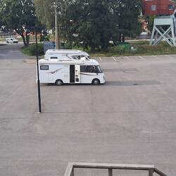 Ausgewählter Stellplatz wurde zu Basketball Ivent umgebaut. Doch wir haben einen schönen Platz am Sportzentrum bekommen.