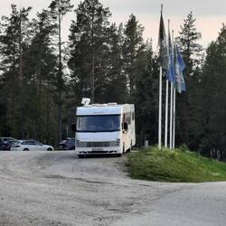 Es wurden doch noch ein paar km. Bei IKEA vorbeigefahren(aufgehoben ist nicht aufgechoben). Stellplatz über Sundsvall . Wir hoffen auf einen schönen Ausblick auch am Abend.
