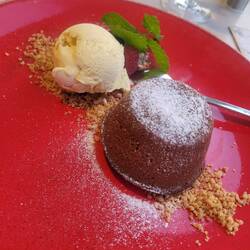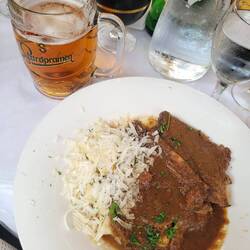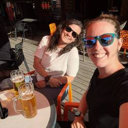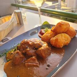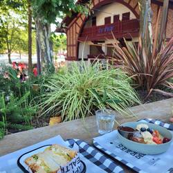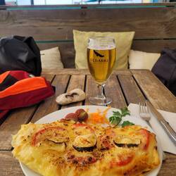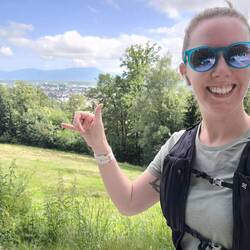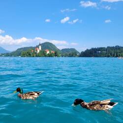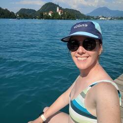 Je suis partie hier en avant-midi pour le Lac de Bled, environ à 1h de bus de la Capitale, il faisait un beauuu gros soleil ! Ma journée d'hier a vraiment été incroyable ! Il y a un beau sentier piétonnier qui longe tout le lac, pour un total d'environ 6km. Alors évidemment j'ai été pour le tour de lac, j'avais aussi vu qu'il y avait une """petite""" rando qui menait à un point de vu pas possible sur le lac. La randonnée était effectivement courte, mais apique à un autre niveau 😅 (et il faisait environ 28°) Mais honnêtement la vue en valait pleinement l'effort ! 😀 C'était vraiment comme dans une carte postale 🤩 La redescente a été relativement plus douce que la montée, fiou ! Suite à ma grosse marche je me suis donc arrêté sur un petit quai, d'où pour me rafraîchir j'ai sauté dans le lac ! L'eau était tellement bonne ! Un bon 83°-84° je dirais. Et que dire de la couleur de l'eau... Les locaux se rende même à l'île du milieu (où il y a l'église) à la nage ! J'aimais mieux y aller en mode relaxe et rester pas loin, surtout avec mon sac qui était sur le quai. J'ai donc fait quelques saucettes et bu une ptite bière en même temps 😁 J'ai terminé ma marche en gougounes tranquillement. Pour couronner ce super lundi, j'ai été à un resto qui était bien quoté sur Google, en effet les recommandations étaient bonnes ! C'est mon meilleur souper à date en Slovénie ! C'était au restaurant Arbor, j'ai pris la "goulash", un genre de bouilli local (il y avait des baies de genièvres dedans !), avec ce qu'ils appellent des croquettes, je décrirais ça comme étant une genre de crêpe soufflée de cabane à sucre, plus dense et sans le sucre. C'était DÉ-LI-CIEUX. J'ai essayé un in blanc et un rouge local, les 2 étaient également très bon 😋 Et j'ai couronné le tout avec un mi-cuit au chocolat. Oui j'ai eu de la misère à digérer 😆 Si Marie était encore là elle aurait pu me grayée en Gaviscon hahaha