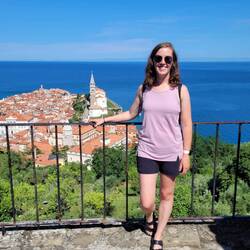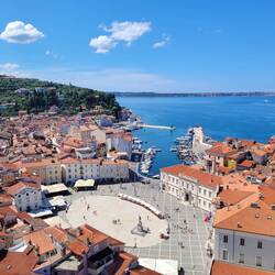 C'est également ma dernière journée en Slovénie. Pour terminer cette aventure je suis à Piran qui est situé sur une péninsule côtière donnant sur la mer Adriatique ! C'est tout simplement SUPERBE ! C'est une village piétonnier, les petites ruelles étroites sont vraiment charmantes, c'est vraiment collé sur l'Italie donc la nourriture à date est très bonne et plus diversifiée et en plus de ça, la température est parfaite. ☀️