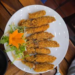 Am Abend waren wir lecker essen. Garnelen und kleine Tuben. Reis und Morning Glory dazu....lecker.
