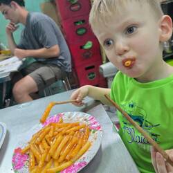 Zum Abschluss waren wir heute noch auf dem Nachmarkt in Da Lat. Für die Jungs gab es Würstchen, Donats und ander frietierte Teilchen. Domenico hat sich leckere Reisröllchen geholt, gefüllt mitBaca selengkapnya