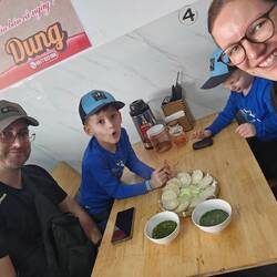 Wir hatten einen tollen Nachmittag. Die Bar gehört einer Vietnamesin und einem Australier. Der Ausblick war toll und auch die Cinnamonrolls, die Pizza, der Smoothie und das Bier sehr lecker.