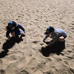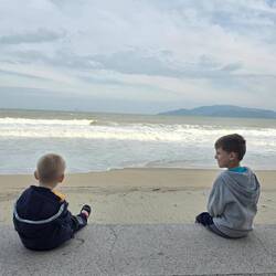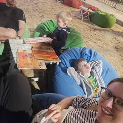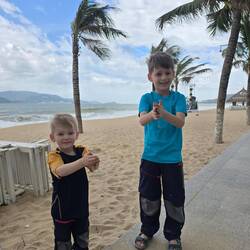 Heute morgen wars endlich mal nicht ganz so stürmisch, sodass die Jungs endlich etwas am Strand spielen konnten. Wir haben einen frischen Saft genossen.