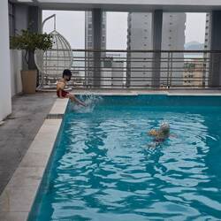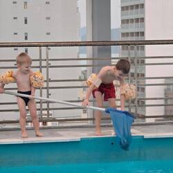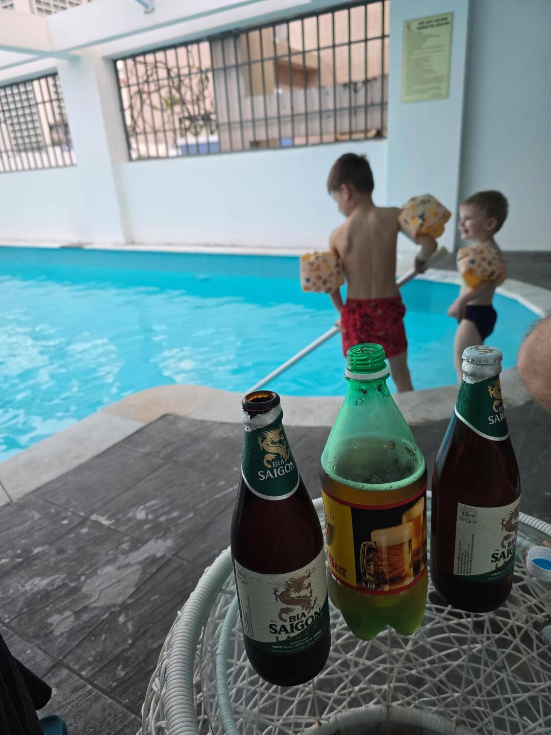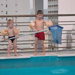 Die Jungs wollten so gerne nochmal in den Pool. Es war wirklich frisch, aber die beiden hat es nicht gestört.
