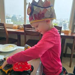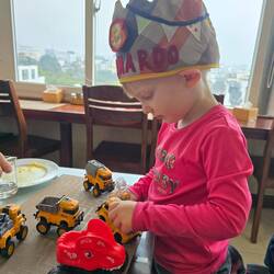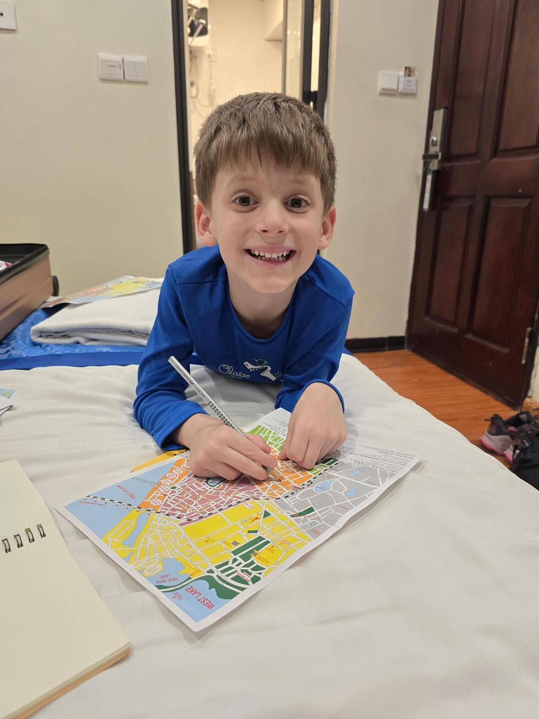 Leonardo ist auf dem Weg ins Hotel im Grab eingeschlafen. Also haben wir bei der Ankunft noch etwas Zeit im Zimmer verbracht und Lorenzo hat einen Stadtplan in eine Schatzkarte verwandelt.