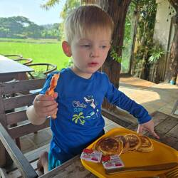 Heute morgen gabs von Loui leckere Bananen Pankakes mit Honig und frische Mango dazu. Die Jungs durften ihre erste Runde auf dem Roller drehen und wir haben aus ganz dünn geschnitten BambusstreifenRead more