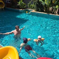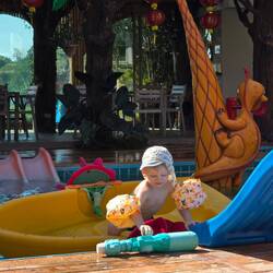 Wir sind gut in Thaland gelandet und von unserem Hotel abgeholt worden. Wir sind diesmal etwas außerhalb von der City und wohnen in einem richtig schönen Resort. Es gibt mehrere Pools, Rutschen,Read more