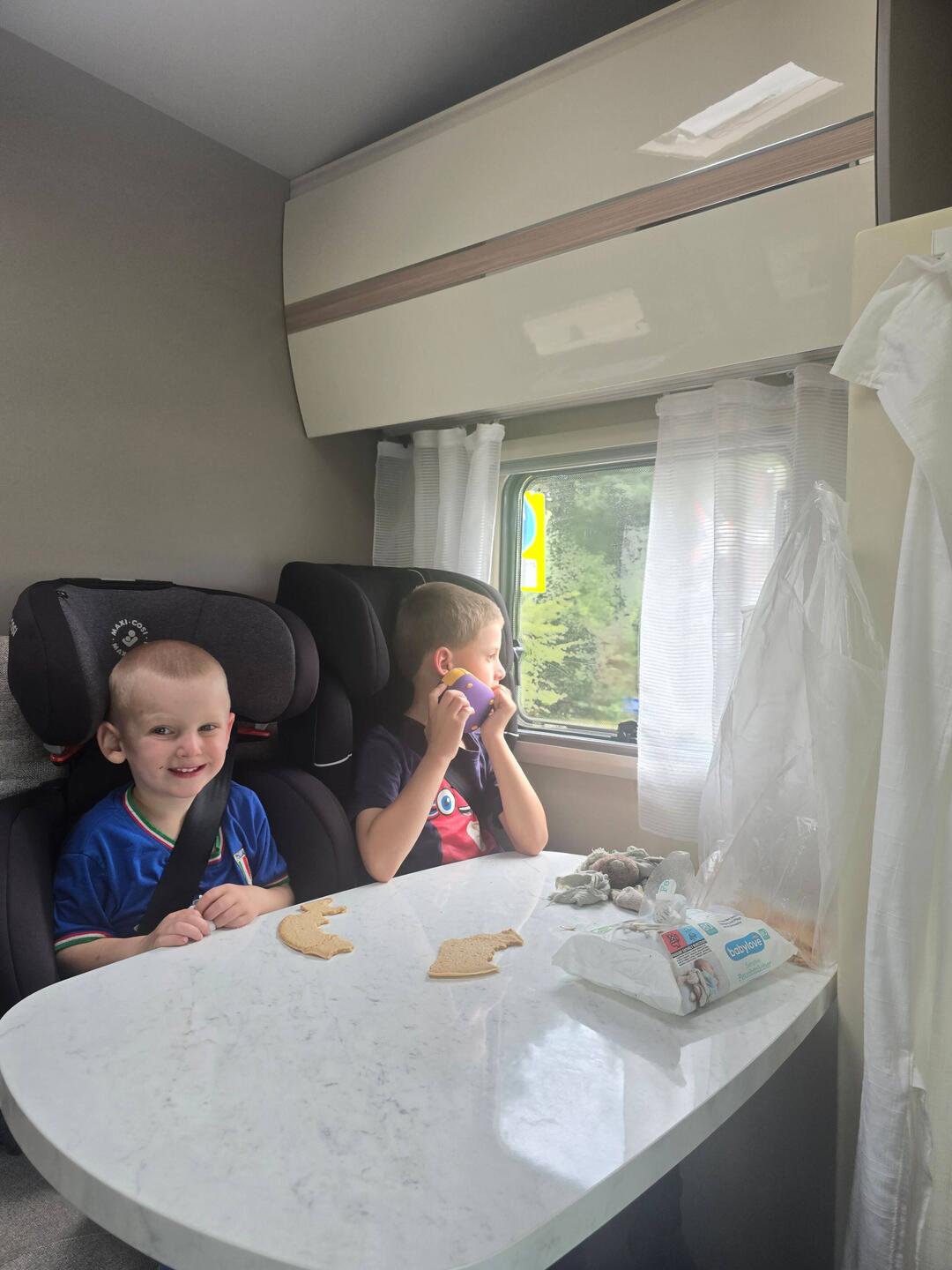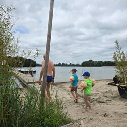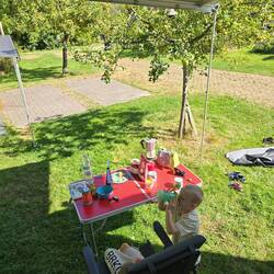 Angekommen auf einem süßen kleinen Campingplatz mit direktem Zugang zum See. Die Jungs haben schon ausgiebig den neuen Spielplatz getestet.