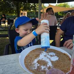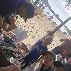 Alle hatten langsam aber sicher Hunger. Also haben wir uns endlich auf den Weg zum See gemacht. Es gab Pizza, Pommes und Fikandel.