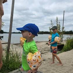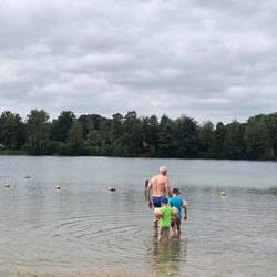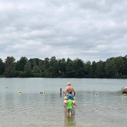 Heute mittag ging es nach einem gemütlichen Frühstück an den See. Die Jungs wollten endlich schwimmen. Lorenzo war sehr mutig und komplett mit dem Opa schwimmen. Leonardo war etwas skeptischer. EsRead more