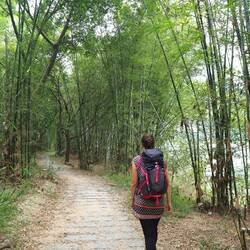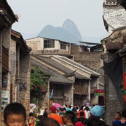 Doch glücklicherweise ließ sich unser Floss-Steuermann etwas zurückfallen, so dass wir dann die Tour auf dem Fluss doch genießen konnten, die Boote entzerrten sich sehr. Nach einer Stunde erreichten wir die Mashan Warft, von wo aus wir ca. 2 h entlang des Flusses weiter nach Xingping liefen. Der Weg führte uns an einer berühmten Stelle vorbei - der Kulisse, die als Vorlage für den 20 Yuan Schein diente 💴.