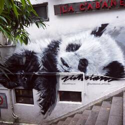 Am Victoria Peak angekommen, wird man direkt in eine Shopping Mall geführt, die extra für die Touristen hier oben gebaut wurde... Wer's braucht...🤷♀️ Oben war die Aussicht jedoch mäßig, denn es war sehr diesig, so dass man die andere Seite der Stadt nur im Dunst sehen konnte. Mit dem Bus fuhren wir wieder vom Peak zurück ins Zentrum, um den "Central Mid levels Escalator" anzuschauen. Dies ist eine Anreihung aus 20 Rolltreppen mit einer Länge von 800m über 135 Höhenmetern. Mit den Rolltreppen werden die Viertel "Central" (Geschäftszentrum) und "Mid Levels" (Wohnviertel) verbunden. Die längste außenstehende Rolltreppe wurde 1993 gebaut um den Zugang zum Wohnviertel zu erleichtern, welches heute auch eine hippe Gegend (Soho) mit vielen Cafés, Bars, Restaurants und Galerien ist. Bei unserem Spaziergang durch Soho entdeckten wir einige Street Art Bilder und das PMQ - ein Center mit Kunstausstellungen und kleinen Boutiquen. In einer der Ausstellungen (Grafikdesign in Japan) durften die Besucher selbst kreativ werden und Postkarten basteln, dieser Aktion schlossen wir uns gleich an. 🤪