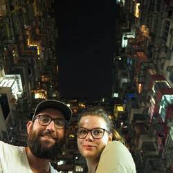 Nachdem wir uns bei einem Straßenmetzger mit den Spezialitäten Roasted BBQ Duck und Honey Roasted Pork gestärkt hatten, waren wir aber auch ganz schön platt von dem Tag und Wetter, so dass wir uns ein Spätnachmittagsschläfchen gönnten. Am Abend fuhren wir noch mit der Straßenbahn zum Fok Shoeng Building - ein Wohnhaus, dass es durch seine U-förmige Bauform sogar auf das Titelblatt des Lonely Planet geschafft hat. Wenn man im Innenhof nach oben schaut, erblickt man die 3 Wände des Hauses. Ein weiteres Hochhaus bildet die 4te Wand, die einen im Hochhausdschungel das Gefühl gibt eingesperrt zu sein. Krasses Gebäudeensamble und ein Must-See in Honk Kong. Auf dem Rückweg konnten wir noch beobachten wie gerade Aktivisten der Demokratiebewegung die Straße plakatierten, sonst haben wir von den Demos noch nichts mitbekommen.Read more