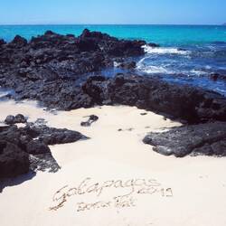 Im weiteren Verlauf der Tour fuhren wir wieder zurück auf Santa Cruz. Es ging zu einem Traumstrand "Los Bachas Beach", der neben einer Lagune (inkl. 1 Flamingo) auch mit perfektem, weißen Sandstrand aufwartete. Hier legen viele Schildkröten ihre Eier ab und Iguanas nesten auch - beide haben wir dort allerdings nicht gesehen. Das vorgelagerte Riff nutzten wir zum Schnorcheln und konnten u.a. einige Tropenfische, sowie zumindest die Kontur eines Riffhais sehen - für mehr war die Sicht durch recht starke Wellen aufgewühltes Wasser, nicht ausreichend.