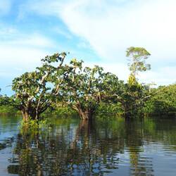 Unsere erste Nacht im Dschungel verlief ganz ruhig - ohne Spinnen in unserem Gemach, nur der Frosch wollte das Bad nicht freigeben 😅. Gleich nach dem Frühstück starteten wir mit einer 3 h Wanderung mitten durch den Dschungel. Unser Guide William erklärte uns ausgiebig die vielfältige Flora und Fauna und wie die Indigenen diese u.a. als Apotheke oder Jagdmittel nutzen. So wird z.B. die Rinde eines Baumes gekocht um daraus Mittel gegen Malaria zu gewinnen. Aus dem Saft der Lianen wird Gift hergestellt, um damit Vögel und Affen zu jagen. Neben diversen Insekten und Spinnen hatten wir auch das Glück Affen zu sehen - darunter Kapuzineraffen, Totenkopfaffen, der graubärtige Schwarzrückentamarin sowie der wuschig-haarige Mönchsaffe. Leider waren diese, in den dichten Baumkronen, allesamt nur schwer zu fotografieren - aber wir waren froh die unterschiedlichen Affen überhaupt in freier Wildbahn gesehen zu haben.