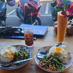 Kurz im Bungalow mein Chiang Mai Hotel gebucht und Mittagessen. Ein neues Restaurant mit sehr guten Bewertungen ausprobiert. Name war Chef Koh Chang. Hier gabs Pad Khrapao und einen Thai Tea. Danach ging es wieder heim zum weiter chillen.