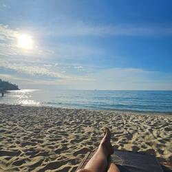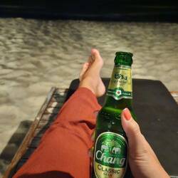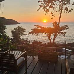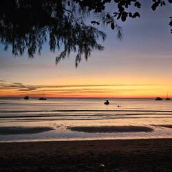 Eigentlich wollten wir dann noch Kajak zur Nachbarinsel Ko Ngam fahren um dort die Drohne steigen zu lassen. Beide hatten aber keine Lust und so wollten wir direkt am Ufer einfach rüberfliegen. Der Typ meinte aber nur nono und ich hole die Police und dann sind wir weg, eine Straße weiter einfach zu so Bungalows und vpn da aus sogar besser gestartet. Komplett zurück Insel rüber geflogen und dann wieder weg. Wir waren etwas nervös, hat aber alles geklappt 🙈