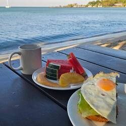 Dann runter zum Frühstück. Dort mit einer Koreanerin und Französin in einem Französisch Englisch Mix gesprochen über den Nationalpark in den ich eh wollte. Dann hab ich noch fix was am Lappi gemacht bis ich um kurz vor 11 ausgecheckt habe und zum Yoga lief. Die Französin ist mitgekommen 😊.