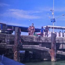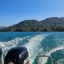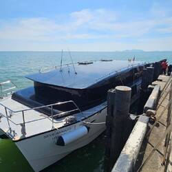 Nach 20min Fahrt waren wir am Pier bekamen unseren Bangkok Sticker und 30min später saßen wir im Speedboot. Weitere 30min später die ich schlafend auf meinem Rucksack verbrachte, und das ohne Vomex kamen wir am Pier an. Dort wie am Flughafen alle in einen Shuttlebus weil der Pier so lang und weit ins Meer reinragt.